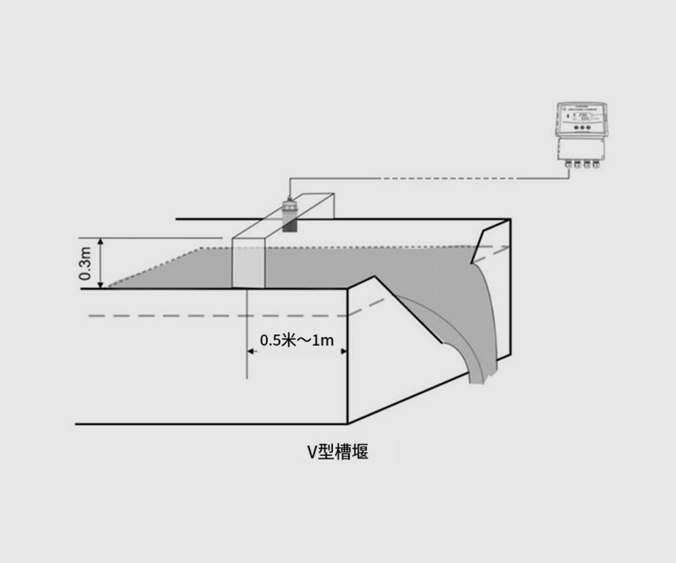探頭必須安裝在水槽或堰的上游。