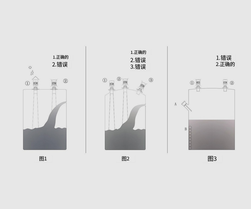 機械安裝時應注意:安裝應垂直于測是物表面,避免用于測量泡沫性質物體,避免安裝于距測量物體表面距離小于盲區距離(盲區:每臺產品會有一個標準,隨產品得知),應考慮束避開陰擋物質不與灌口和容器壁相遇,檢測大塊固體物應調整探頭方位,減少測量誤差。